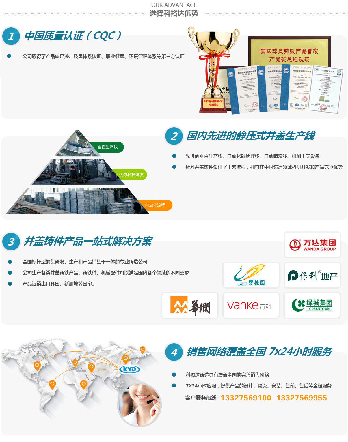 晉城市科裕達(dá)鑄造有限公司,位于山西省晉城市南村鎮(zhèn)智能綠色鑄造創(chuàng)新產(chǎn)業(yè)園區(qū),成立于2014年2月,注冊(cè)資金2億元整,產(chǎn)量10萬(wàn)噸。經(jīng)過(guò)這些來(lái)的發(fā)展,已經(jīng)成為全國(guó)集研發(fā)、生產(chǎn)、銷(xiāo)售各類(lèi)球墨鑄鐵井蓋、箅子產(chǎn)品于一體的專(zhuān)業(yè)鑄造公司,是已知國(guó)內(nèi)較大的球墨鑄鐵井蓋生產(chǎn)基地。2016年10月,公司順利通過(guò)了二級(jí)安全生產(chǎn)標(biāo)準(zhǔn)化的評(píng)審,正式成為一家二級(jí)安全生產(chǎn)標(biāo)準(zhǔn)化企業(yè)。2017年3月,山西省安全生產(chǎn)監(jiān)督管理局授予公司2016年冶金工貿(mào)行業(yè)“安全生產(chǎn)先進(jìn)單位”稱(chēng)號(hào)。2017年11月被山西省中小企業(yè)局授予“專(zhuān)精特新”中小企業(yè)榮譽(yù)。2020年8月被認(rèn)定為國(guó)家高新技術(shù)企業(yè)。2021年5月被中國(guó)鑄造協(xié)會(huì)認(rèn)定為“單項(xiàng)冠軍企業(yè)”。2021年9月被山西省中小企業(yè)局授予“專(zhuān)精特新小巨人”企業(yè)榮譽(yù)。2022年被中國(guó)鑄造協(xié)會(huì)認(rèn)定為第四屆鑄造行業(yè)排頭兵企業(yè)。2023年7月被工信部認(rèn)定為“國(guó)家級(jí)專(zhuān)精特新小巨人”企業(yè)榮譽(yù)。2024年被省工信廳認(rèn)定有“省級(jí)綠色工廠”及“省級(jí)企業(yè)技術(shù)中心”。